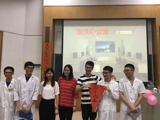 “和谐组”表演的则是患者家属因误解指责医生,经他人及医生解释后了解实情,并感谢医生的故事。在医患关系紧张的今天,小组同学通过真实经历的展现,告诉大家患者不是洪水野兽,耐心的沟通交流,细心的治疗、真诚的安慰是改善医患关系的灵丹妙药。