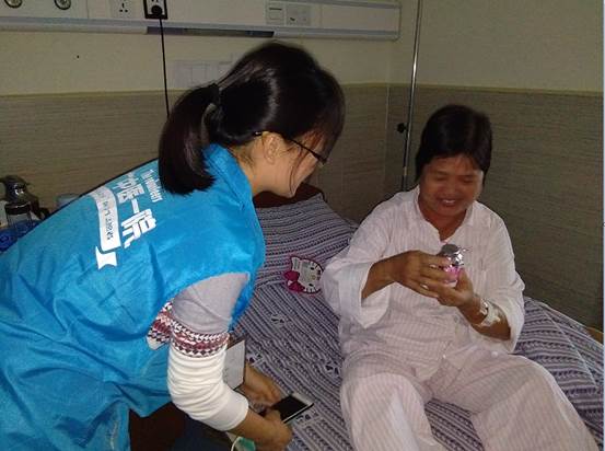 在派发礼物时,我们能够感觉患者收到礼物发自内心的感谢与欣喜,患者家属的欢愉,一位病人说:“我相信这真的可以带来好运!”我心疼得几乎要落下泪来。