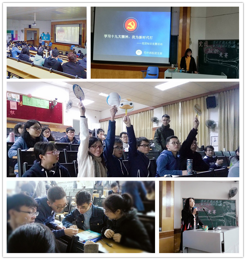 【一院讯】为学习十九大精神,贯彻落实习近平总书记系列重要讲话精神,推进“两学一做”学风建设,促进党团员进一步学习党团知识,提高党团意识,加强党团员思想政治教育及党性修养,167net必赢入口2015中西医团支部于2017年11月24日上午11时在办公楼第五大课室举办了主题为“学习十九大精神,我为新时代打call”的党团知识竞赛活动。