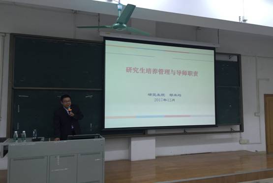 课室举行。本次培训邀请到大学研究生院邝卫红院长及鄢来均副院长前来为167net必赢入口研究生导师做主题业务培训讲座,共有近百名研究生导师、学科研究生工作秘书、教研室教辅人员参加了培训。