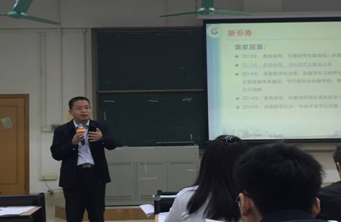 邝卫红院长从国家教育部、国务院学位办及广东省近几年不断加大力度推进的,关于深化研究生教育改革的若干文件和举措的解读引出了“新形势下研究生教育的责任与实践”这一主题。邝院长进一步从研究生培养类别、招生规模、生源质量、学位授权四方面为培训人员讲解了目前我校研究生的教育概况,并指明我校研究生教育的定位和理念,其中重点强调了中医药研究生分类培养的特点以及“双一流”建设对研究生教育改革的积极推动作用。邝院长还和大家介绍了我校研究生教育近几年来的改革实践和举措,概括为四方面:1.“一个工作基础”,即研究生教育相关制度建设;2.“两个流程监控”,包括培养流程质量监控和学位论文流程监控;3.“三项保障措施”,包括完善学校—研究生院/学院—教研室/科室/导师三级管理体系、提升管理服务效率和健全多元资助体系;4.四项创新工程,包括导师队伍建设工程、优质生源建设工程、国际教育拓展工程和创新人才培养工程。邝院长以轻松幽默的言辞、师友互动的交流方式,为在场的培训人员生动的讲解了国家研究生教育政策改革导向下我校目前研究生教育的现状以及所做出的实践探索。他多次鼓励研究生导师、教学管理人员应不畏挑战、不断探索,在新形势下面临难题、困境时应积极寻求适应和解决的办法。