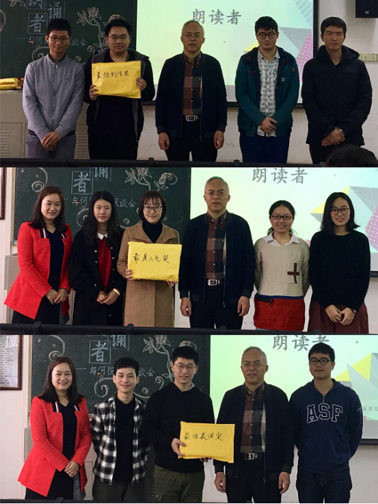 此次诗歌朗诵会全体成员一同参与,划分为12支队伍,虽都以朗诵为基本形式,结合对医德医风的理解,表演方式却是五花八门,展现出各自独特的个性特征及才能。如陈锦棠等三位同学,以各自家乡方言演绎《医学生座右铭》,匹配上诙谐青春的动作,让大家忍俊不禁,掌声连连。男生的表演多是幽默有趣,而女生们普遍比较煽情。有的宣读希格拉底医学生誓言,有的诵读纪伯伦的经典作品《论工作》,有的为医患纠纷中受伤的医生们呐喊《请你喊我医生》,朵朵金花声情并茂的表演感染了在场的每一位观众。何院长为同学们精彩纷呈的表演带头鼓掌,更是受到现场氛围的感染,即兴为大家朗诵《大医精诚》。这篇耳熟能详的文章在他低沉浑厚的嗓音的演绎下,使大家有了更深的感触,相信这番来自医学道路上前辈的教诲与激励,大家将铭记于心。