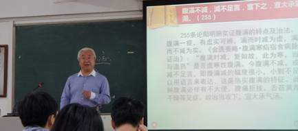 上午,王庆国教授在2016级铁涛班开展了本科生课堂示范教学——“《伤寒论》大承气汤证、麻子仁丸证和导下法”,王教授立足《伤寒论》经典理论,结合自己的临床经验,生动地阐述了经方的疗效和无穷魅力,同时毫无保留地分享了他的临证心得及其独特的教学思维和方法,加深了我们老师对经典认识,增强了学生对中医经典的兴趣和信心。