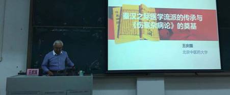 下午,王庆国教授主讲专题讲座“秦汉之际的医学传承及《伤寒杂病论》的奠基”。首先,王教授厘清了《伤寒杂病论》的历史源流,认为《伤寒杂病论》是从《内经》继承发展而来,是各个医学流派经过学术割据后重新交流融合,形成了这部宏篇巨作,奠定了中医学病证结合的理论体系,对祖国医学的发展具有深远的影响。然后,王教授从古代中医流派的起源娓娓道来,旁征博引,让中医学子们认识到中医的源远流长、代代相承,为人类健康作出的巨大贡献。