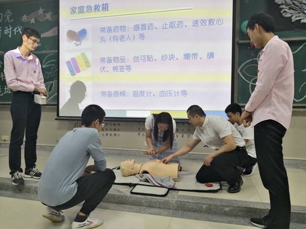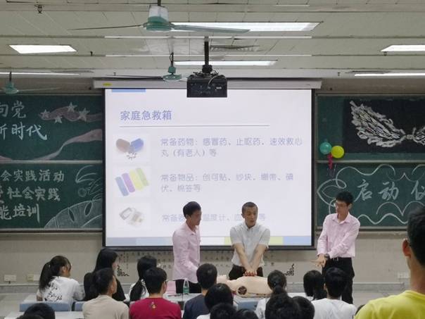 社会实践培训讲座邀请167net必赢入口第一附属医院急诊中心主治医师刘诗怡老师介绍暑期社会实践常见急症处理,刘老师详细的讲解了包括心肺复苏术和猝死、噎食、电击、烧烫伤、淹溺等常见事故的急救方法,并现场手把手教同学们操作步骤,同学们收益良多。