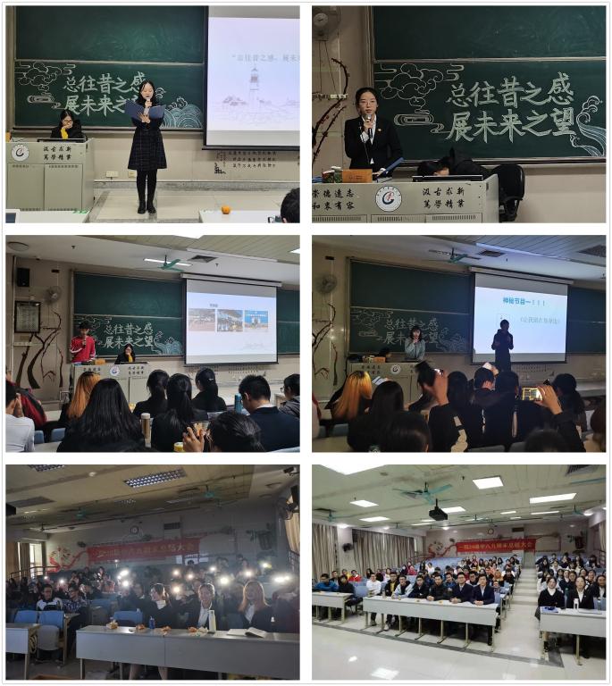在主持人杨馨雨同学专业精彩的开场后,会议正式开始。第一个环节是班委会成员的工作汇报,十位班委依次上台向同学们进行学期工作述职汇报,他们一方面回顾了本学期任职期间的工作情况,发表了工作感想,另一方面也借此机会感谢积极协助和配合班委会工作的同学们。第二个环节是班费公示,生活委员向同学们详细地汇报了本学期班费的收支情况。接着是由张雨露与陈卓霖同学带来的合唱《让我留在你身边》,动人的歌曲,闪烁的灯光将现场气氛推向高潮。紧接着,为回顾入学以来班级各项活动的具体开展,各活动项目的代表进行了总结发言。校运会、院运会的班级运动员代表邱渊博、吴咏琳同学做出运动方面的总结发言,倡导大家阳光运动;迎新晚会节目代表陈丹妍同学发言,对未来的文体活动作出美好展望;辩论赛班级代表肖可同学讲述了自己参赛的心路历程;班级公众号小组代表周坤霖同学总结本学期公众号小组的工作,并感谢组员的辛苦付出。一位位活动代表真诚的总结发言使全体同学进一步感受到在班级每一项工作的顺利呈现背后,总有那么一群默默在奉献的同学,这无疑是对全体同学最好的集体主义精神教育、感恩教育。在同学们期待的目光下,第二个节目揭开神秘面纱——李懿同学与王小林同学为大家带来歌曲《太阳》,温柔的旋律让同学们在这寒冬里感受到丝丝温暖。在最后的环节中,文体委员黄孙洋同学为大家介绍班级近期准备开展的阳光体育活动;学习委员钟嘉滢同学讲述大学以来第一个期末考试的备考方法,介绍新策划的学习小组活动;姜启翱同学向同学们强调第二课堂活动的重要性。