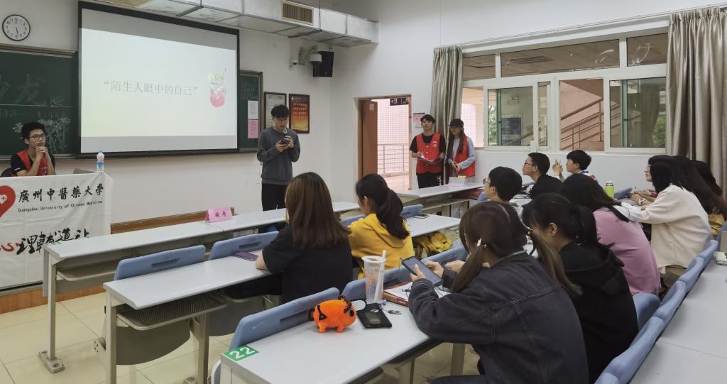 接着,大家又进行了“陌生人眼中的自己”的活动。并在游戏的最后,请三位心理委员描述了自己拿到的人物形象,并给予了评语和希望。