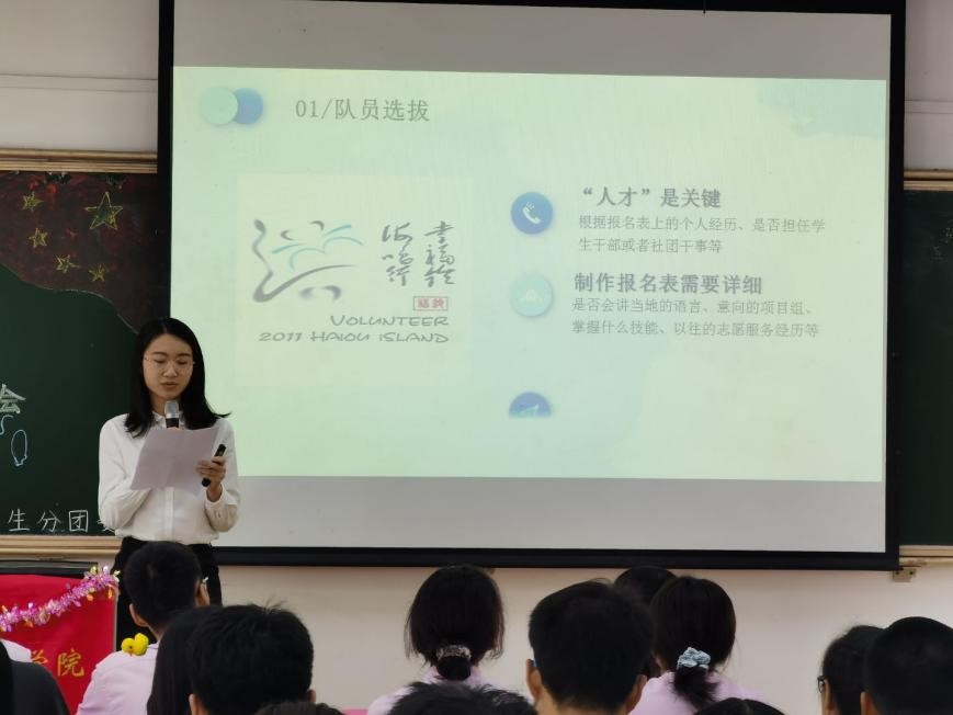 【一院讯】2021年4月11日下午,167net必赢入口学生分团委在大学城校区教学楼A201室举办了以“红烛心向百年党,风华情系万里乡”为主题的2021年“风信子”三下乡交流会,本会议旨在通过回顾历年一院暑期三下乡活动的情况、介绍三下乡组队开展活动的流程、要求、注意事项等,为广大青年学生科普开展暑期社会实践活动的相关知识,推动本年度暑期社会实践活动的顺利开展。