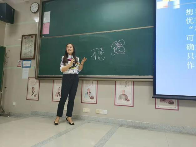 首先,邱老师以“什么是礼仪”开篇,以“礼仪之邦”和繁体的“礼”字为引,带领青马学员们重新了解了礼仪的概念。紧接着,邱老师从“微笑、握手、介绍、拜访、微信用语”等多方面详细介绍了社交礼仪的基本内容,诠释了其基本原则,让团学骨干正确认识到了礼仪的特征。同时,邱老师现身说法,以身示教,并结合自身多年的生活工作经历,为我们讲解了提升人际交往能力和培养良好口才的技巧。她还提出“3A原则”、“积极倾听术”、“文明十字”、“沟通的六个原则”等独特见解,以丰富而详实的案例拓宽了学员们对人际交往的认知视野。在此期间,为了加深学员们对日常基本礼仪的理解,邱老师不仅与现场学员进行握手,展示正确握手的要点,还设置特定情景让学员们进行演绎。在提问互动环节,学员们踊跃提问,现场气氛达到了高潮,邱老师也耐心地为学员们答疑解惑,列事例,明道理,为他们处理生活中的棘手问题提供新思路。最后,邱老师以“投入才会深入,付出才会杰出,用心才会开心”作为结尾,表达了对青马学员成为有修养、有素质的团学骨干的殷切希望。