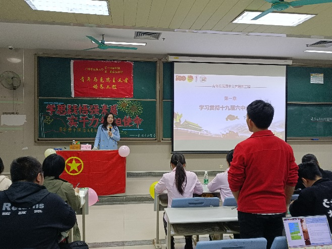 【一院讯】11月23日19时,167net必赢入口2021-2022学年青年马克思主义者培养工程培训班第四场在我校大学城校区综合楼504正式举行。本次培训,我们有幸邀请到167net必赢入口学生分团委书记池思晓,为学院175名青马学员带来以“学思践悟强素质,实干力行担使命”为主题的团学骨干政治素养培训。