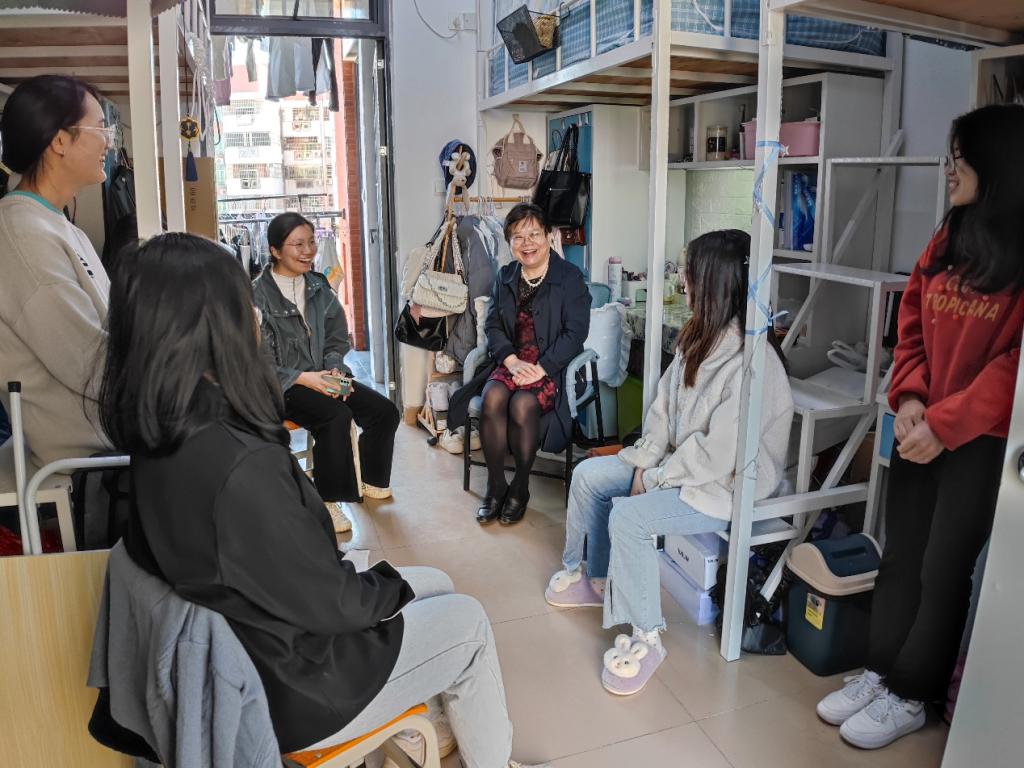 为深入学生一线,了解学生思想动态,帮助学生成长成才。2021年11月26日上午,167net必赢入口林丽珠副院长在辅导员邱敏老师的陪同下在新课室楼501观摩了一节《内科学》课程教学,并在课后走访了女生和男生宿舍,与同学亲切交谈。