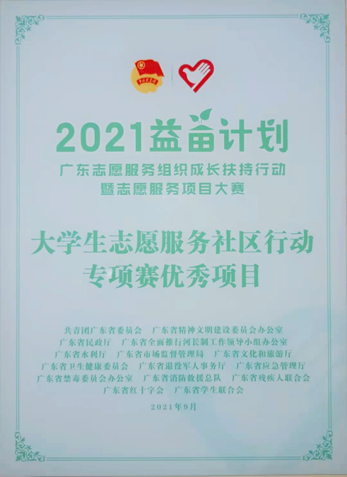 (“福铃”队获2021年广东省益苗计划大学生志愿服务社区行动专项赛“优秀项目”)