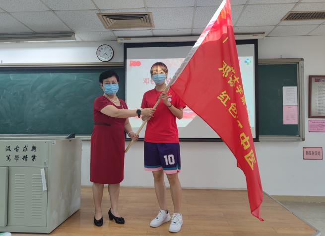 (学校党委张建华书记为宣讲团授旗)