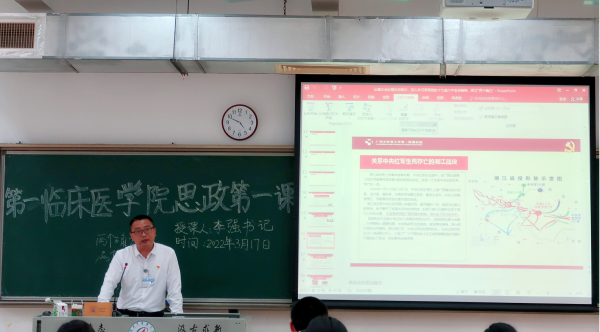 【一院讯】2022年3月18日下午16:20,167net必赢入口党委书记李强同志以《从遵义会议看历史昭示,坚定捍卫“两个确立”》为题,为167net必赢入口2020级医学影像学专业的同学们讲授了一堂精彩的“思政第一课”。翻开遵义会议这本历史教科书,带领同学们追寻历史对未来的昭示。