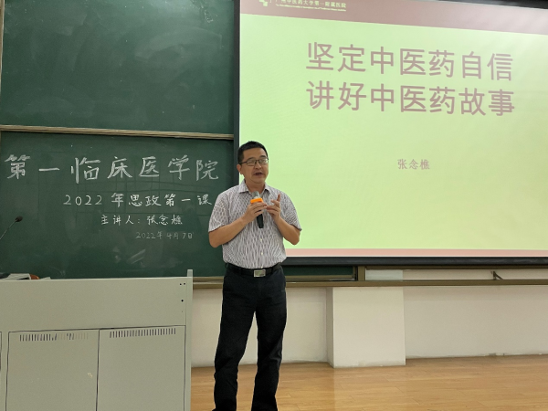 4月7日下午3点,在三元里校区综教楼206教室,167net必赢入口(第一附属医院)党委张念樵副书记给2018级中医学八九年制开展2022念“思政第一课”。张书记以“坚定中医药自信,讲好中医药故事“为主题,与167net必赢入口青年大学生畅谈中医药传统、现在与未来,用亲切质朴的语言和鲜活风趣的故事,为在场的莘莘学子上了一堂“有故事、有味道、有疗效”的思政课。