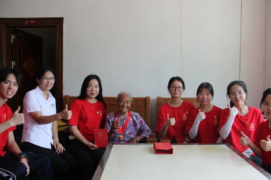 队员们聆听着张奶奶的讲述,感悟着烽火战乱年代共产党员的精神品格,内心深处一股热流在涌动。访谈临近结束时,张奶奶展示了自己“光荣在党五十年”的荣誉勋章,还殷切地嘱咐到访的师生要“继续努力,不忘初心,对党忠诚,争做榜样!”探访已结束,而张奶奶的殷殷嘱托仍犹在耳边。相信“韶关星火”志愿服务队的师生们必将以优秀的党员前辈们为榜样,牢记青年人的使命担当,珍惜和平年代的求学与工作的机会,向着成为有理想有担当的新时代青年奋进,用青春奋斗为强国建设贡献力量!