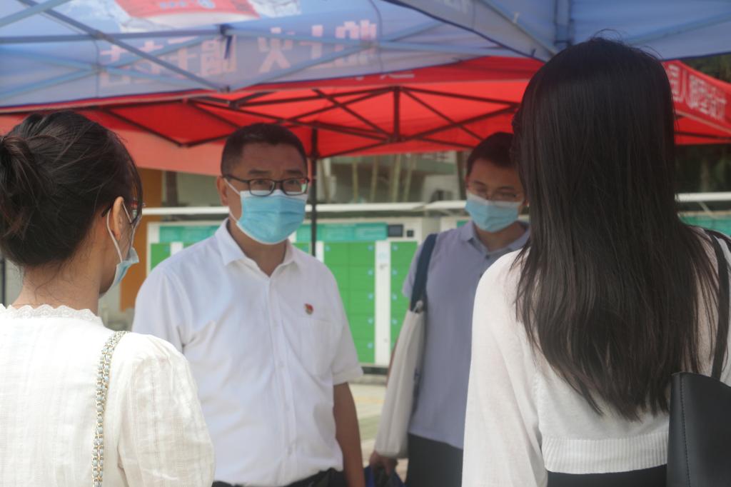 迎新期间,学院(医院)党委李强书记、章遐义副书记、学院分团委池思晓书记率新生辅导员来到报到点亲切慰问现场工作人员,检查了解迎新工作总体情况,从严落实疫情防控、多层次完善迎新服务等方面作出细致指导,同时与2022级新生亲切交流,希望新生们尽快适应大学生活,积极进取,不负韶华。最后,学院领导老师嘱咐大家做好防暑、防疫,并鼓励大家以最热情的态度,最周到的服务迎接2022级新生。
