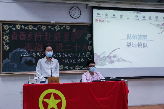 在播放167net必赢入口精彩的年度“三下乡”总结视频后,主持人宣布评比大会正式开始,并向观众介绍评比规则。各队伍以幻灯片、视频等形式展示了各自的实践成果,其中不仅有基础医疗志愿服务、义教、调研等传统的暑期社会实践内容,还有讲好中医药故事、宣讲铁涛红色故事、探访老党员、参观著名红色景点等特色活动。这些活动不仅让中医药文化走进群众、让党史教育课程深入人心,更激励着一院学子成为堪当民族复兴重任的新时代青年。各队伍的实践成果展示各有千秋,在每支队伍在展示结束后便进入答辩环节,面对评审团的现场提问,队伍答辩者随机应变,围绕下乡的实际情况进行回答,展示了167net必赢入口青年朝气蓬勃的面貌。