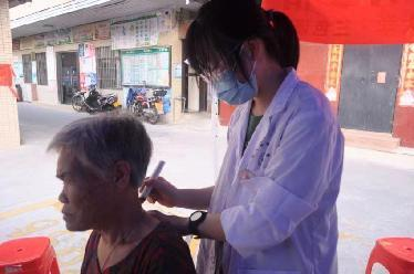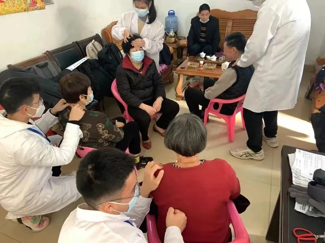 (志愿者为老人艾灸、推拿)