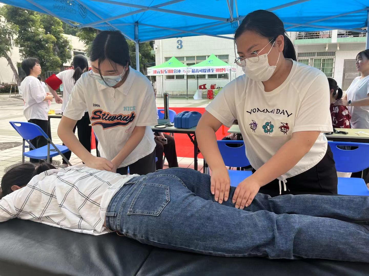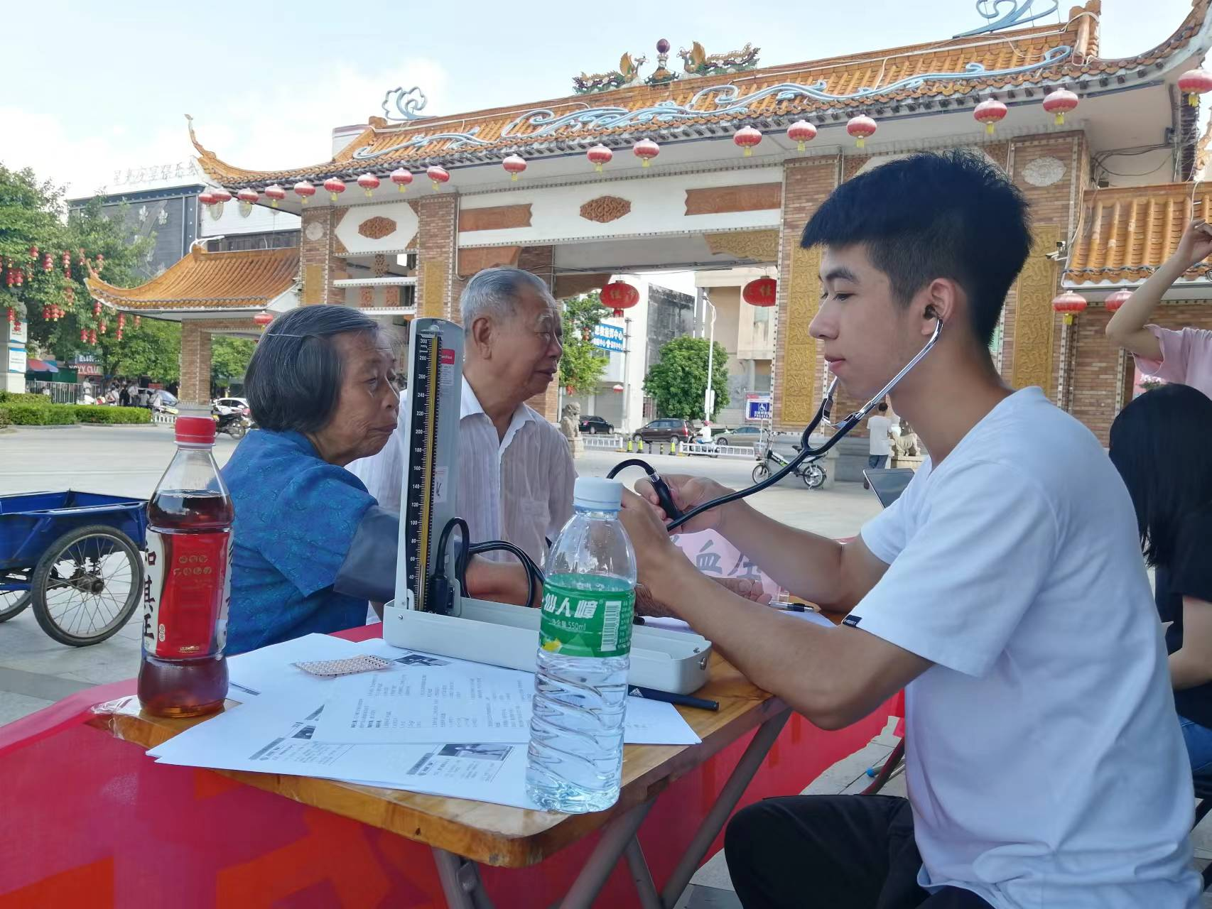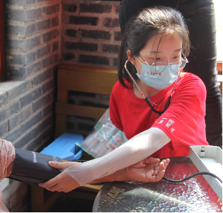(志愿者为同学和教职工量血压、推拿)