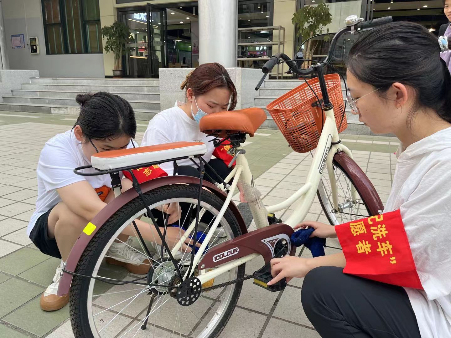 三月春风暖人心,雷锋精神照我行。3月18日、19日,一院学生团委携手生命缘青年志愿者协会,合作开展“锋”记服务站活动,组织25名志愿者在大学城校区第一食堂前空地为同学和教职工们提供免费洗车、除锈、贴反光条、清洗眼镜、贴耳穴、推拿与量血压等志愿者服务。志愿者们分工明确,秩序井然,以实际行动展现了责任担当与服务奉献精神。同学和教职工们感受到被服务的关怀,纷纷向志愿者们表达感谢。