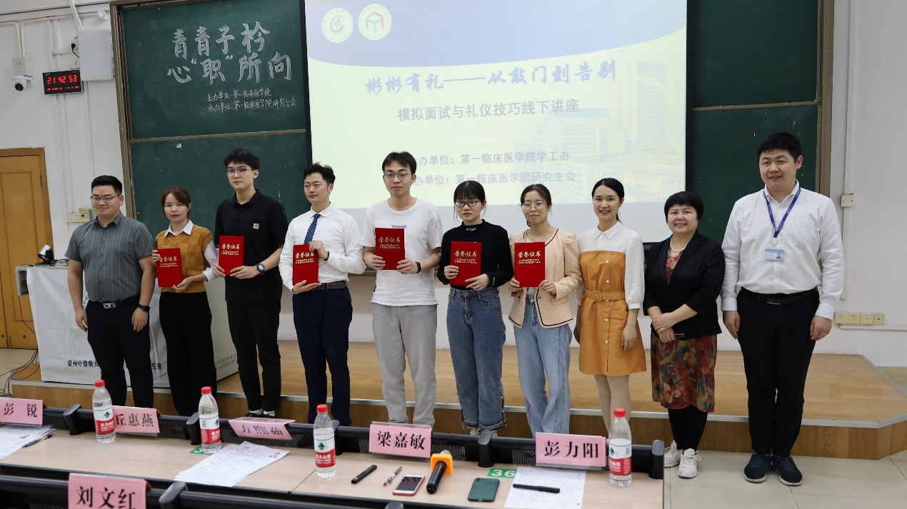 3月22日晚19点, 167net必赢入口2023年 “彬彬有礼——从敲门到告别”毕业生就业面试礼仪与技巧培训讲座在我校三元里校区综教楼204会议室顺利举行。167net必赢入口第一附属医院人事处丘惠燕处长、教学处方熙茹处长、大内科(内科教研室)副主任彭锐教授、肛肠科副主任孙锋教授、学生工作办公室副主任李肇宏老师、辅导员刘文红老师、辅导员彭力阳老师及面试礼仪与技巧培训讲师梁嘉敏老师全程参与此次讲座。