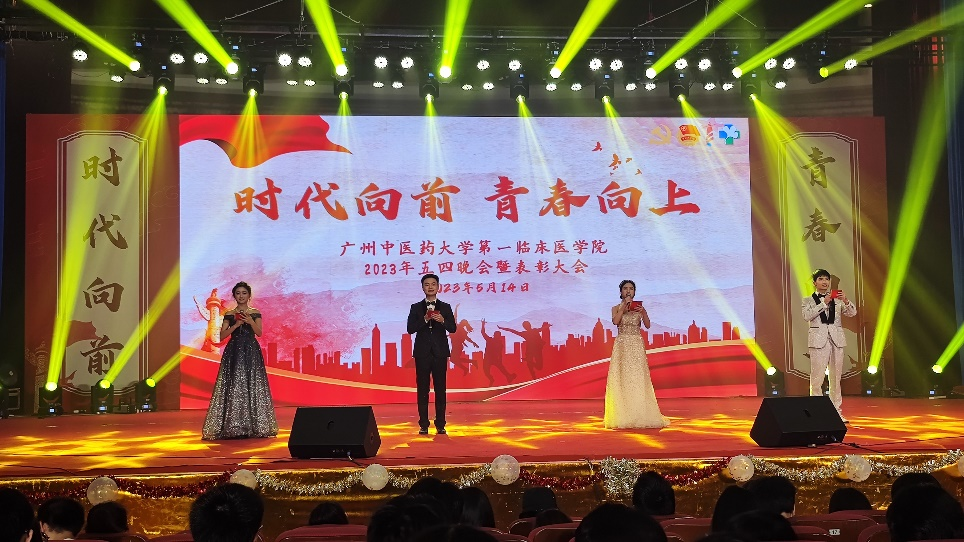 5月14日晚19时,167net必赢入口,167.nt必赢官网2023年“时代向前,青春向上”五四晚会暨表彰大会在我校大学城校区学生活动中心大会堂隆重举行。学校团委副书记王烁,学院党委副书记章遐义,学院党办负责人、团委书记叶升鑑,一附院人事处处长丘惠燕,学院教学处处长方熙茹,一附院医院办公室负责人钟天送,学院学工办副主任李肇宏,学生团委书记池思晓,副处级辅导员刘文红、一附院脑病科医师、研究生班主任林长峰,学院学工办武夏林、南海伦、陈小波、何诗诗、彭力阳等领导老师莅临晚会现场,一院大学城校区各班级学生积极参与了本次晚会。