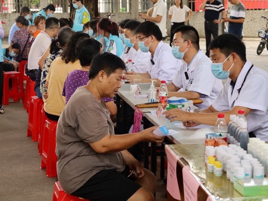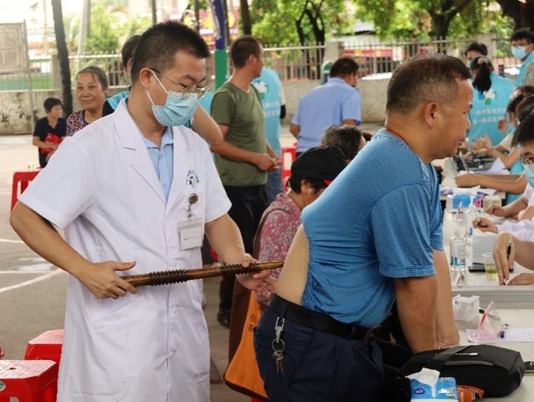 来自广中医一院的针灸推拿康复中心、脊柱骨科、心血管科、呼吸科、脾胃科等科室的医生们,耐心细致地为村民们问诊、辨证施治,还根据需要给村民免费派发广中医一院院内制剂。针推康复中心张医师的“飞针”不仅舒缓了来询者的病痛,也使现场的民众感叹中医特色疗法的神奇;骨科崔医生用中医特色“点棍法”解决了张阿婆长年因农耕导致的腰部疼痛困扰,受到了张阿婆的频频点赞;心血管科康博士的耐心指导使李阿婆对自己的健康状况有了清晰的认识,安心了许多……
