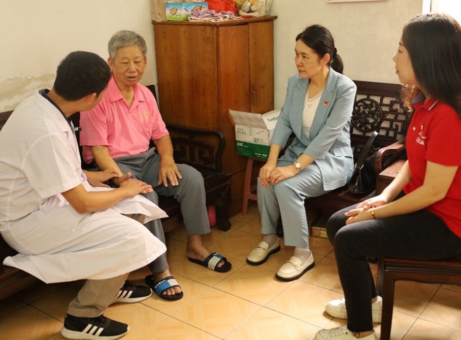 义诊活动火热进行的同时,一部分医生与志愿者跟随广中医一院党委副书记郭文海、石楼镇党委委员钟亮、石楼镇团委书记陈静等一行,深入到当地困难群众的家中,不仅带去了慰问物资和暖心的陪伴,还为他们提供了上门的医疗服务。服务队的真诚与热情深深打动了困难群众并收获了声声感谢。